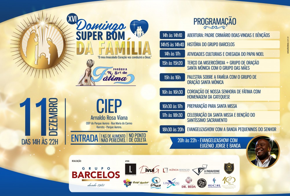 Hoje o Super Bom realizará o XVI Domingo Super Bom da Família com a Paróquia Nossa Senhora de Fátima no CIEP Arnaldo Rosa Viana das 14 as 22h. Para a entrada, 1kg de alimento não perecível, que serão doados às instituições assistidas pela Paróquia. Na programação temos palestras, chegada de Papai Noel, celebração da Santa […]