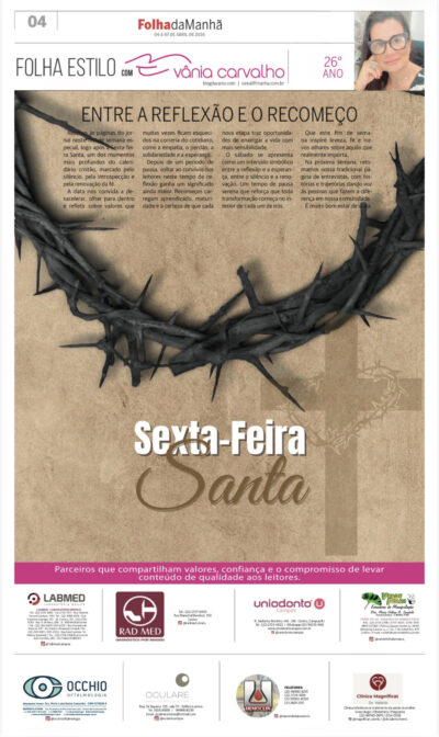 Entre a reflexão e o recomeço Retorno às páginas do jornal neste fim de semana especial, logo após a Sexta-feira Santa, um dos momentos mais