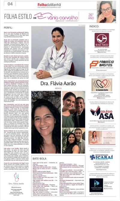 A Dra. Flávia Aarão é médica há 21 anos, formada pela Faculdade de Medicina de Campos, e atua como pediatra há 20 anos, com especialização