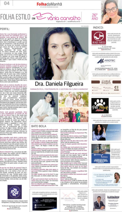 Uma trajetória que une saúde, estética e propósito Formada em Fisioterapia em agosto de 2001, Daniela construiu uma sólida carreira dedicada ao cuidado com as