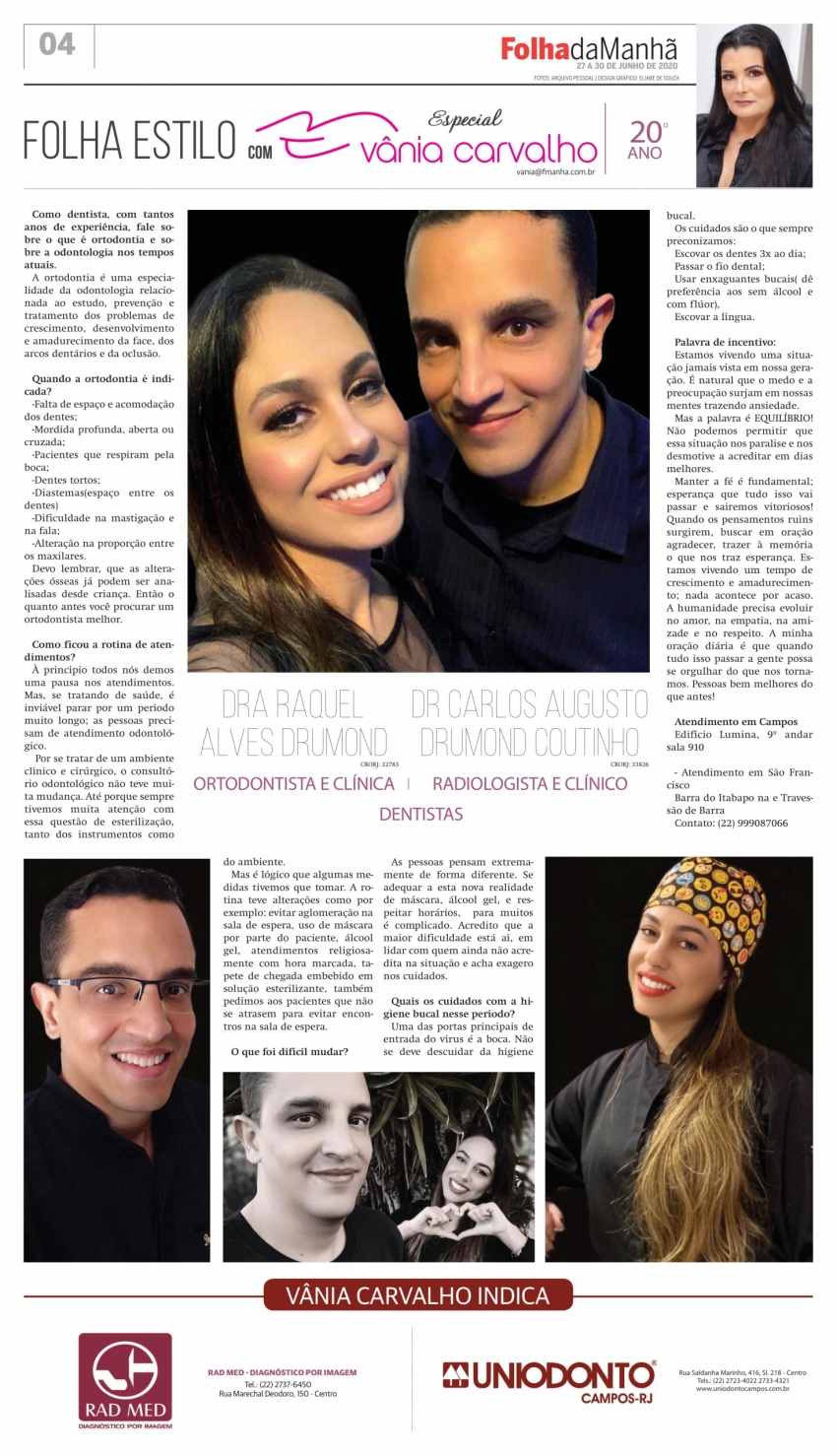 Neste post entrevisto os dentistas Raquel e Carlos Drumond Coutinho na Folha Estilo especial da semana Entrevista: Como dentista, com tantos anos de experiência, fale
