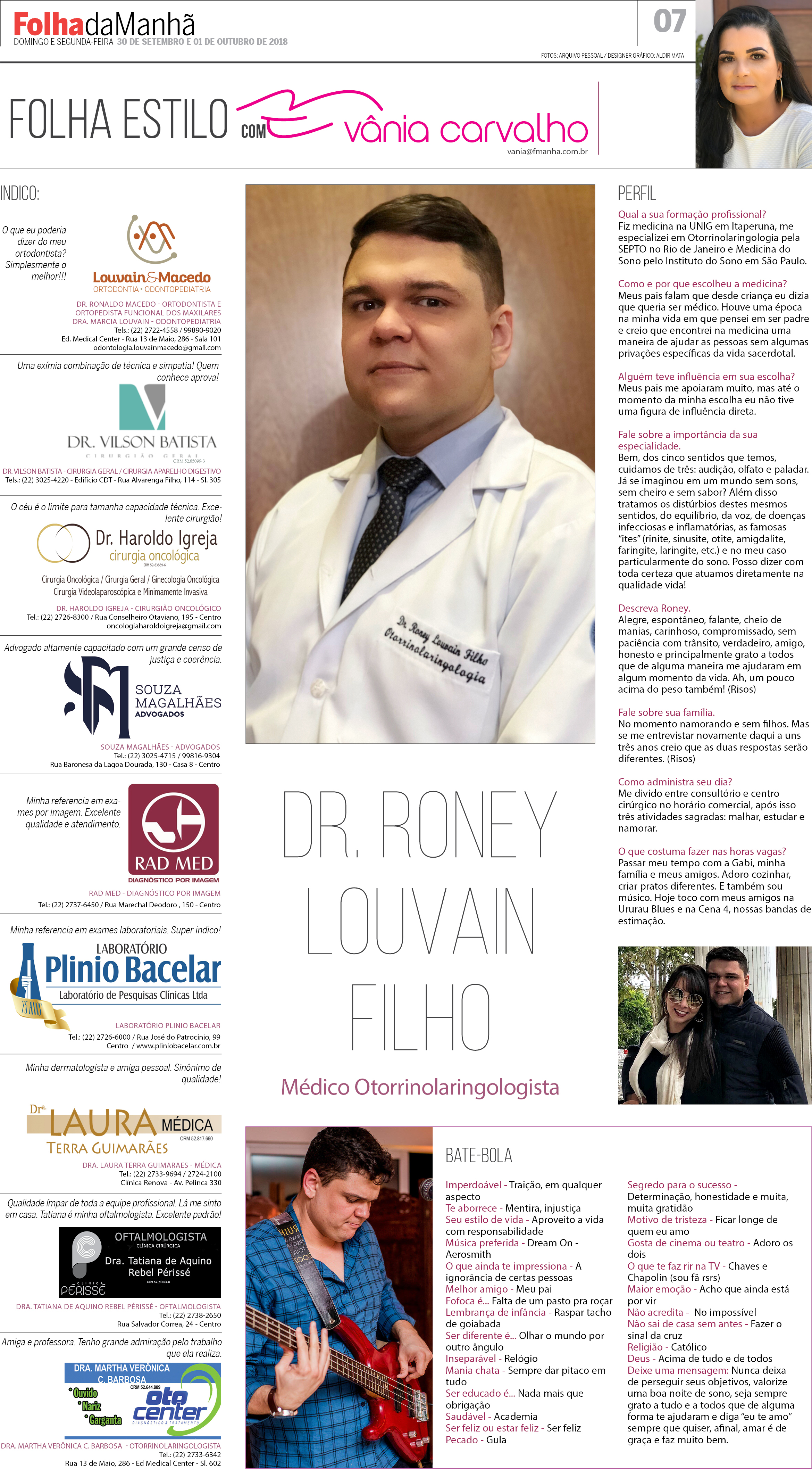 Dr. Roney Louvain Filho – Médico Otorrinolaringologista Perfil: – Qual a sua formação profissional? Fiz medicina na UNIG em Itaperuna, me especializei em Otorrinolaringologia pela SEPTO