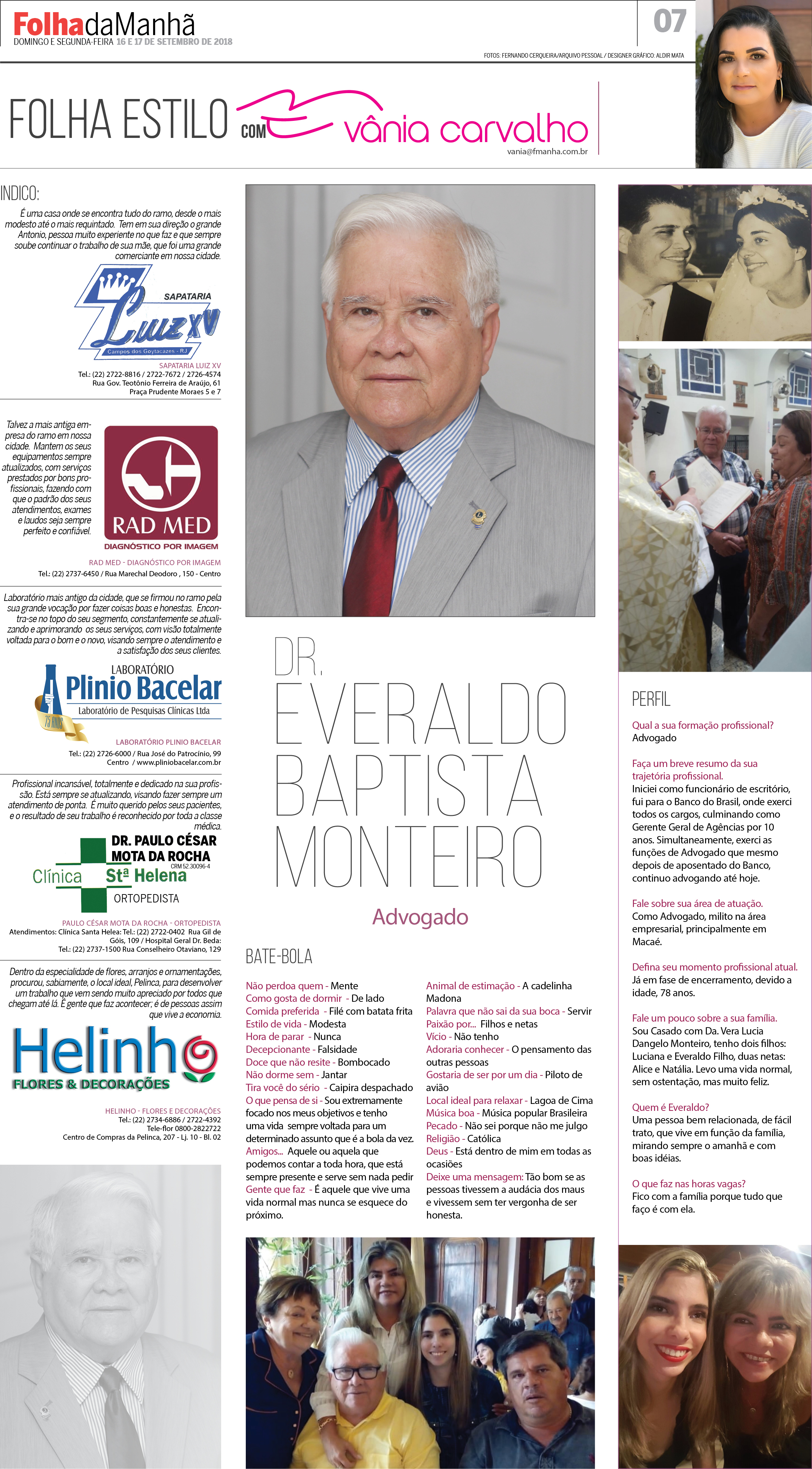 Dr. Everaldo Baptista Monteiro – Advogado Perfil: – Qual a sua formação profissional? Advogado – Faça um breve resumo da sua trajetória profissional. Iniciei como funcionário de