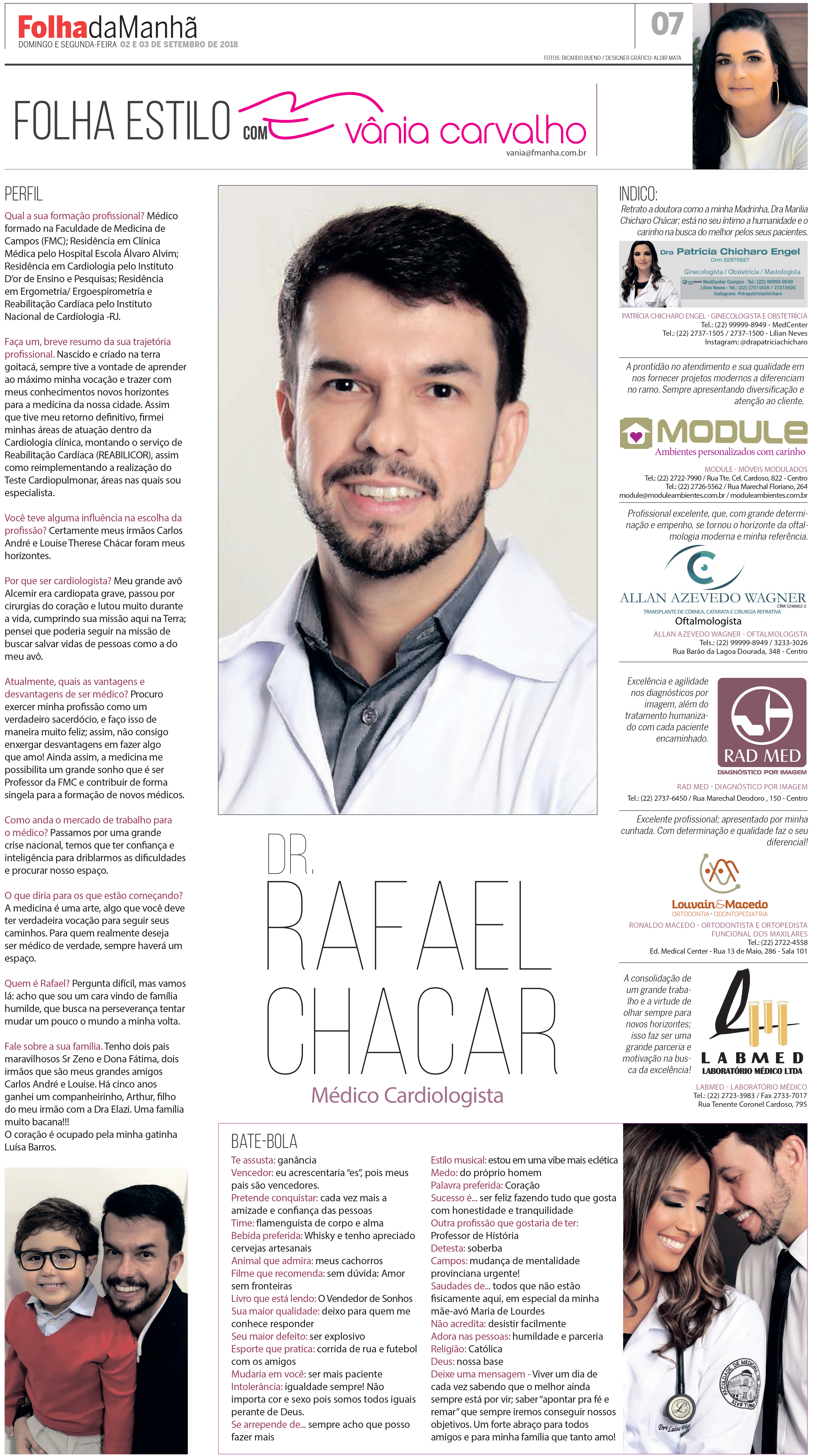 Dr. Rafael Chácar – Cardiologista Perfil: – Qual a sua formação profissional? Médico formado na Faculdade de Medicina de Campos (FMC); Residência em Clínica Médica pelo Hospital