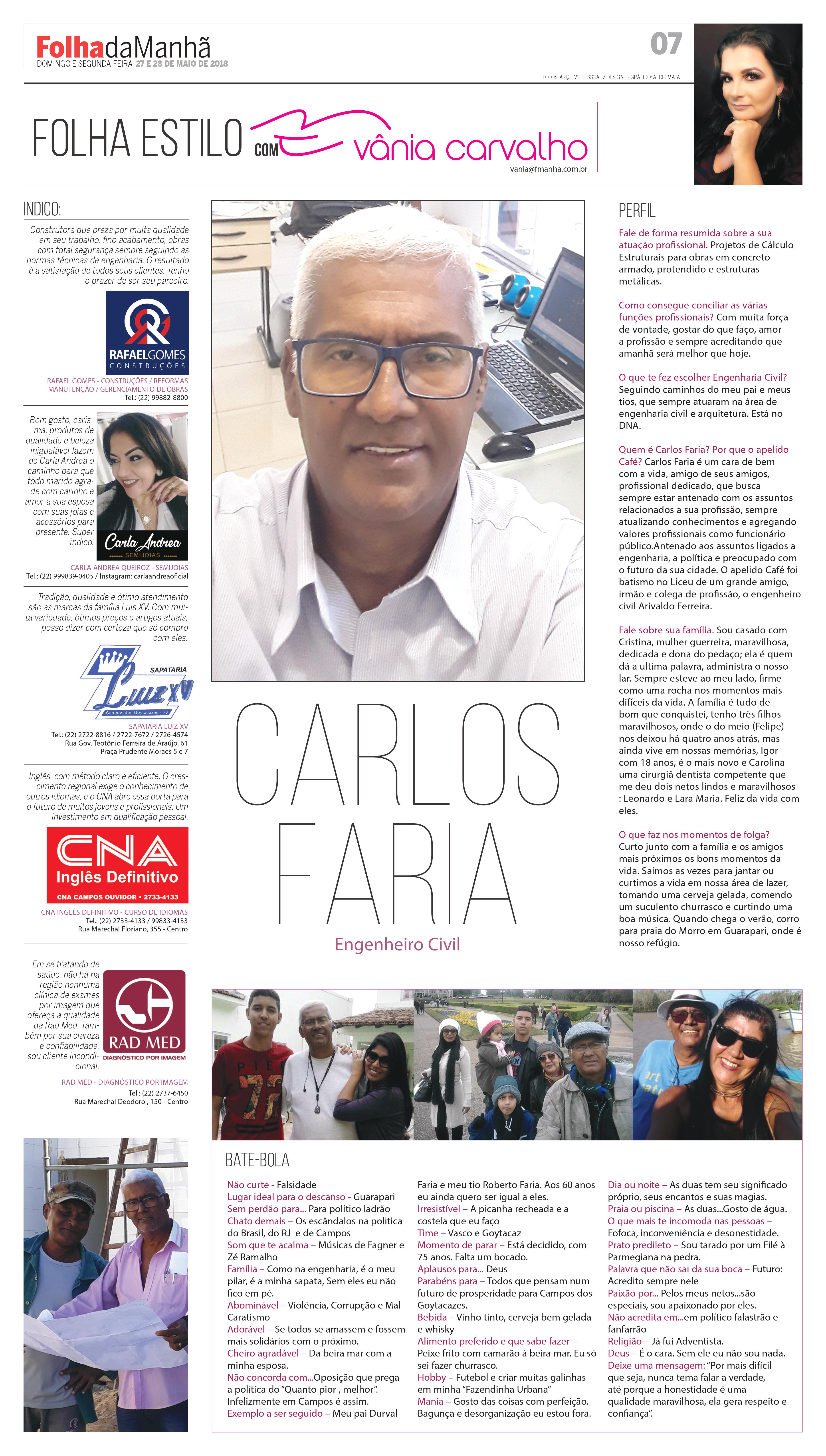 Carlos Faria – Engenheiro Civil – Fale de forma resumida sobre a sua atuação profissional. Projetos de Cálculo Estruturais para obras em concreto armado, protendido e