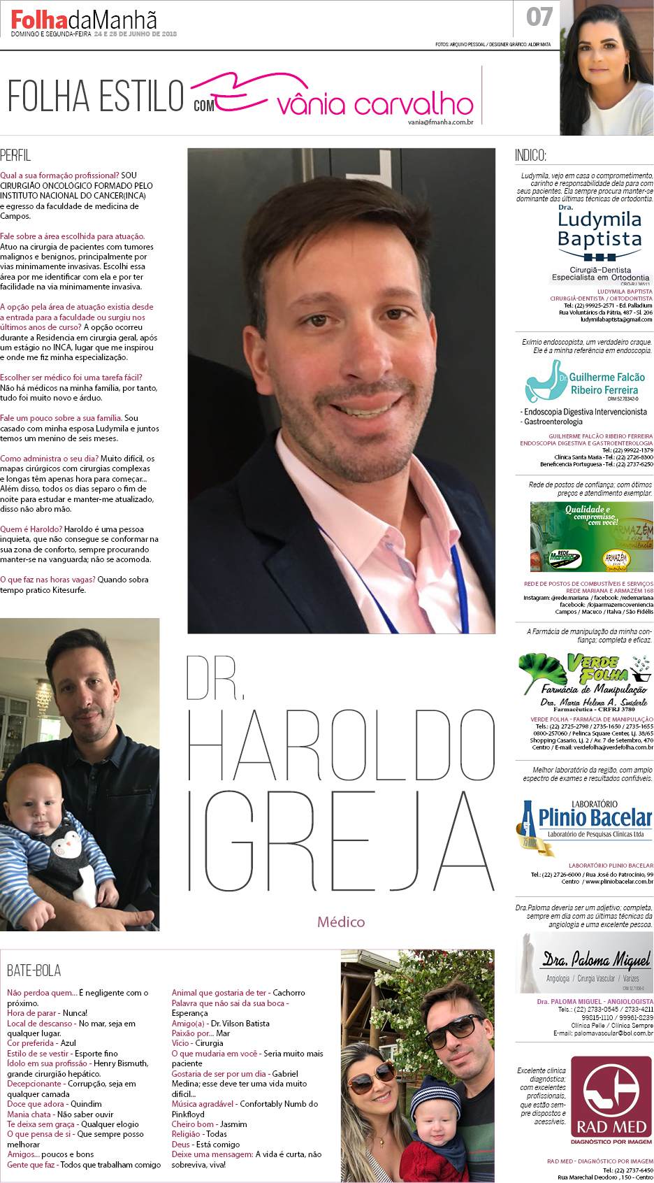 Dr. Haroldo Igreja – Médico Perfil: – Qual a sua formação profissional? SOU CIRURGIÃO ONCOLÓGICO FORMADO PELO INSTITUTO NACIONAL DO CANCER(INCA) e egresso da faculdade de
