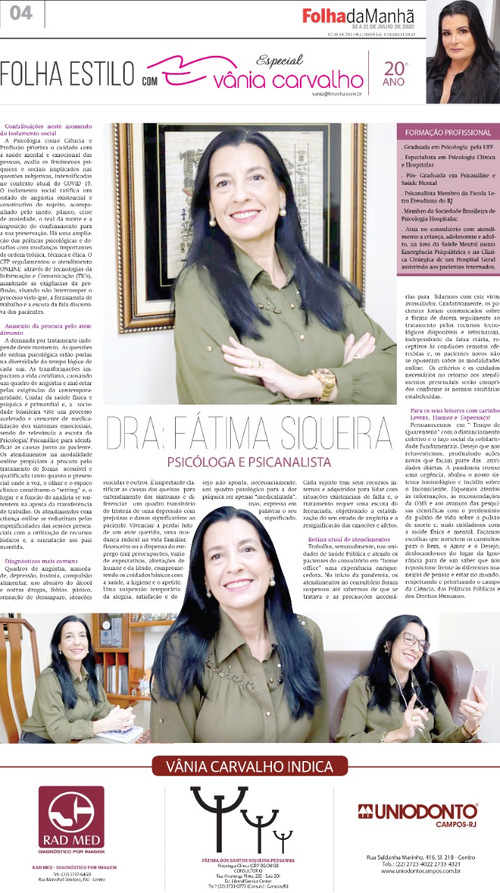 Trabalho, semanalmente, nas unidades de Saúde Pública e atendo os pacientes do consultório em “home office” uma experiência enriquecedora.