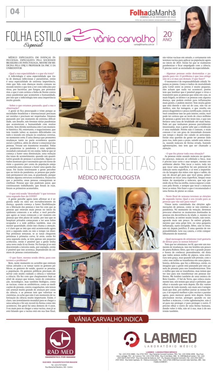 MÉDICO ESPECIALISTA EM DOENÇAS INFECCIOSAS, ESPECIALISTA PELA SOCIEDADE BRASILEIRA DE INFECTOLOGIA, MESTRE EM MEDICINA PELA UFRJ E PROFESSOR DA FMC E DA UNIREDENTOR