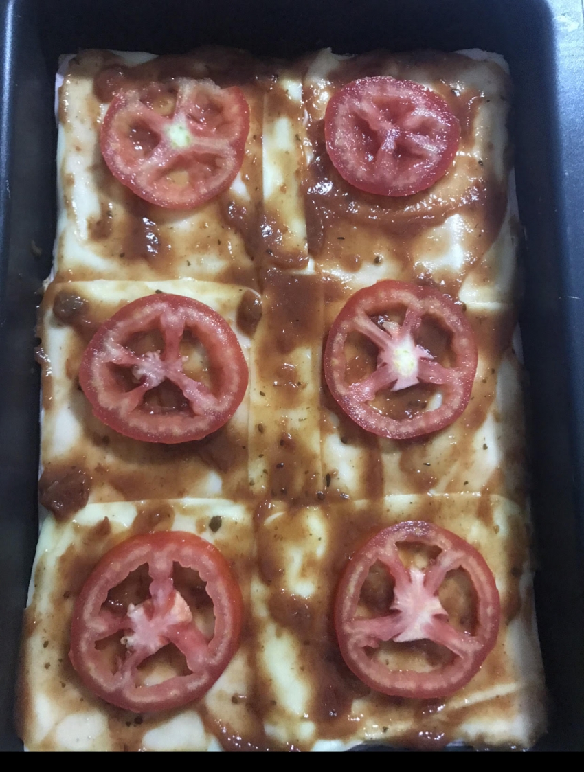 (Pode colocar o tomate por dentro com o recheio e por cima)